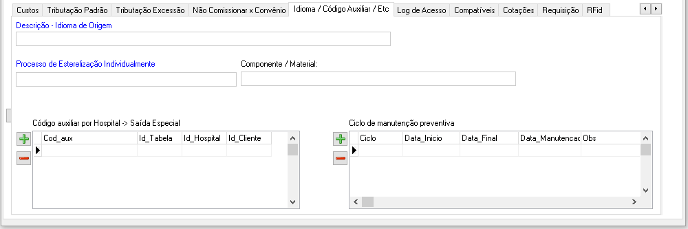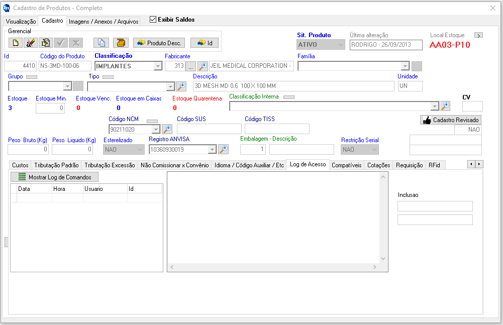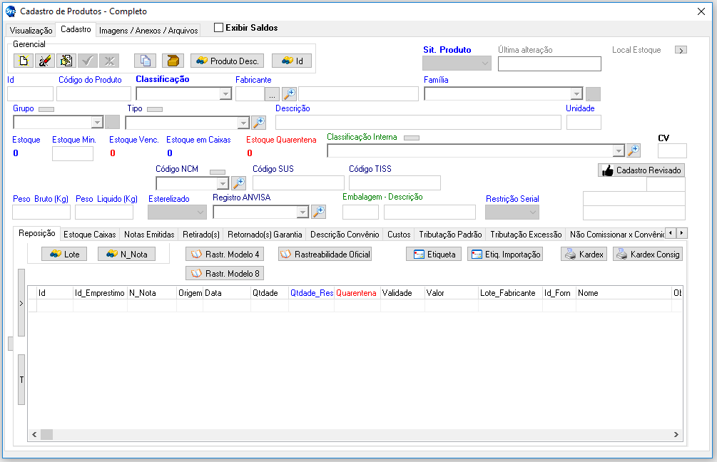 - Esterilizado: Informar se produto for esterilizado. Item muito importante para o entendimento do sistema. Várias apontamentos e funções são geradas com base nesta informação.