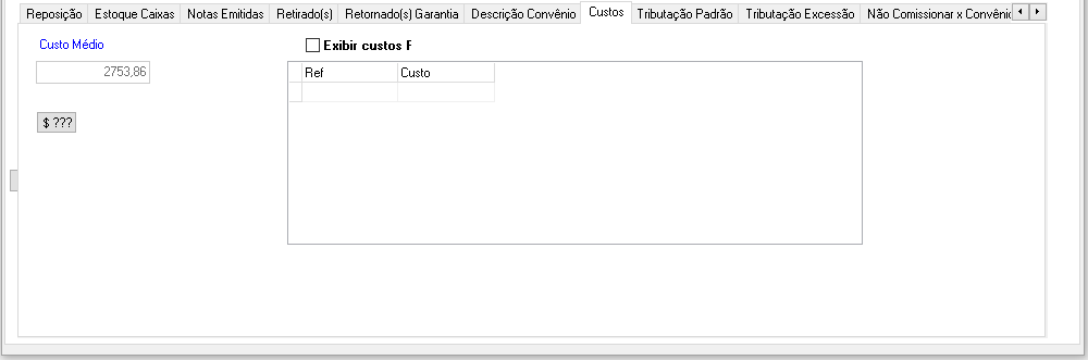 - Opção "Exibir custos P":