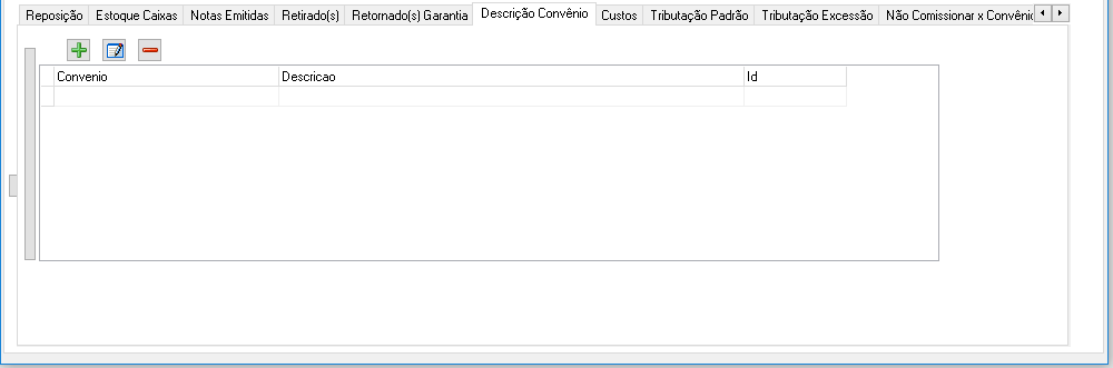 - Botão "Excluir": Exclui a Descrição e Convênio selecionado.
