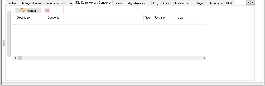 Aba "Não Comissionar x Convênio":