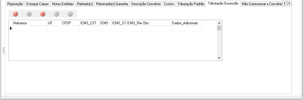 Aba "Tributação Excessão":