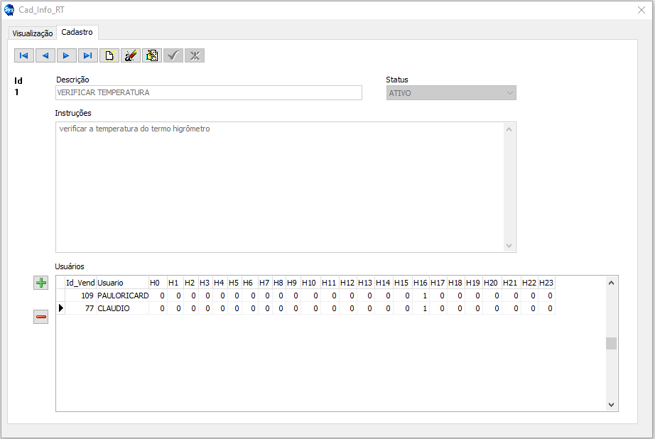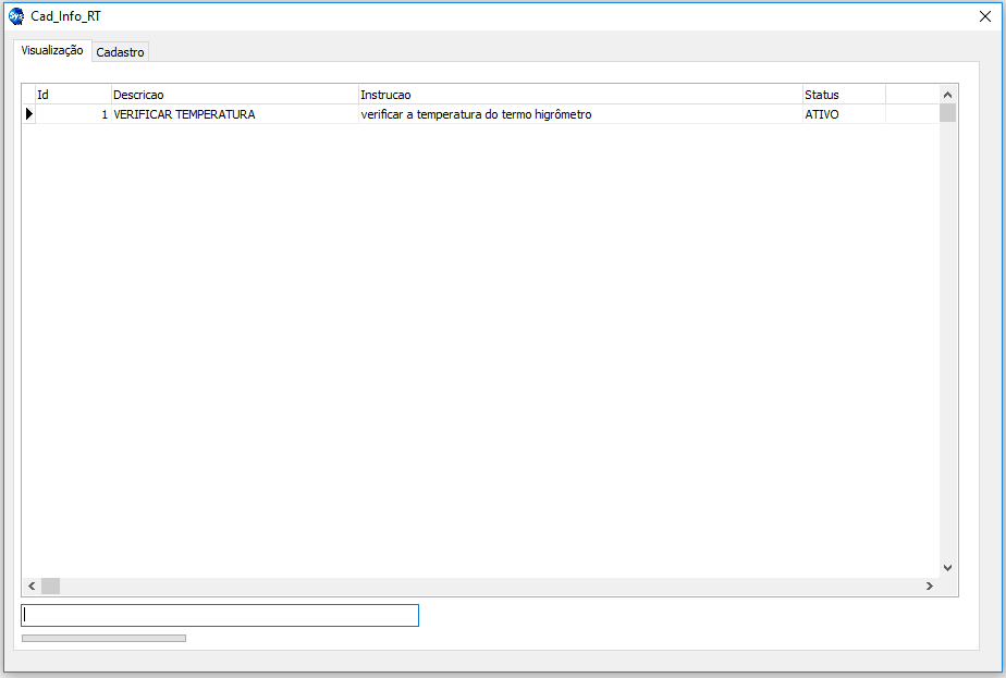 Essa é a aba onde serão incluídos os informativos. Tendo como opção, incluir a descrição, a instrução do mesmo e o status se será ativo ou inativo (caso queira que a informação não seja mais encaminhada na tela).