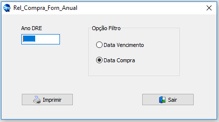 Esse relatório tem como finalidade, mostrar as Compras efetuadas no ano escolhido, tendo como filtro a Data de Vencimento e a Data da Compra do material.