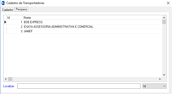 Aba Pesquisa: Guia onde fica listado todas as transportadoras cadastradas.