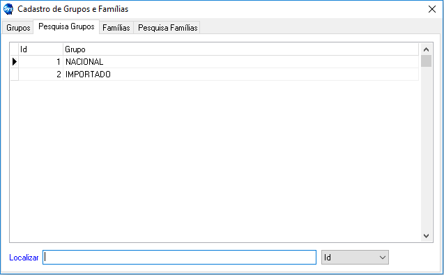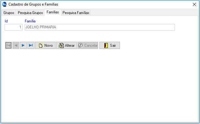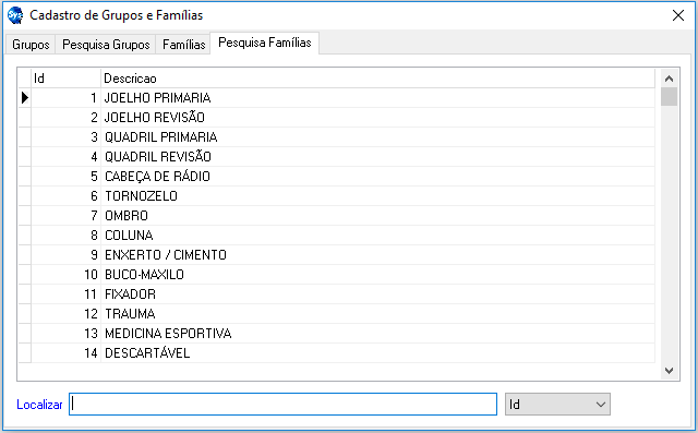 - Aba Pesquisa Famílias: Essa guia mostrará as Famílias que foram incluídos ao sistema.