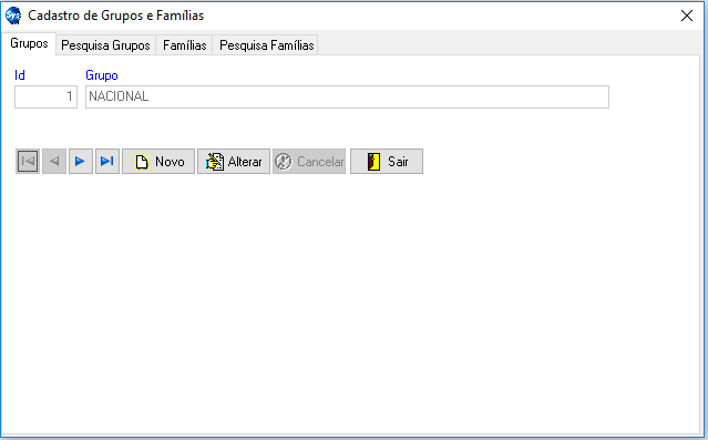 - Aba Grupos: Essa guia serve para incluir o Cadastro de Grupos (Nacional ou Importado).