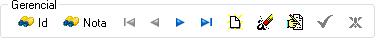 Botões Padrão de Navegação para Pesquisa, Adicionar, Remover conteúdo, Editar, Salvar e Cancelar.