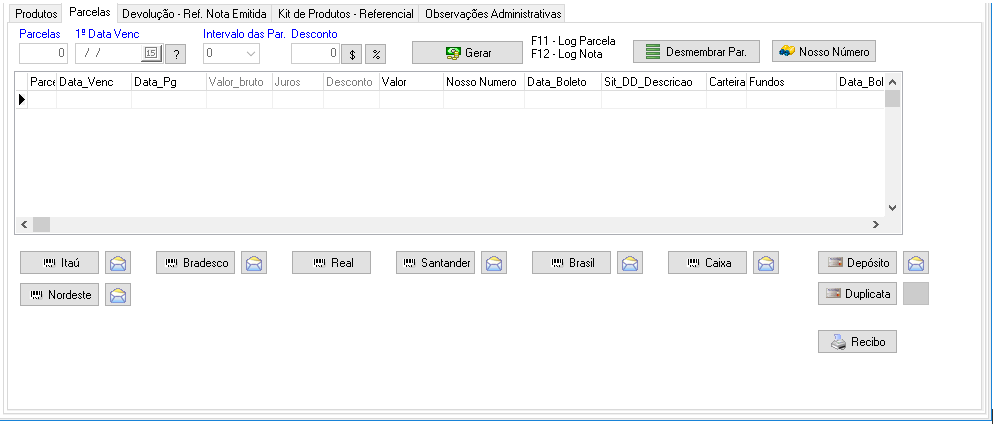 Botão "Santander": gera boleto do banco Santander.