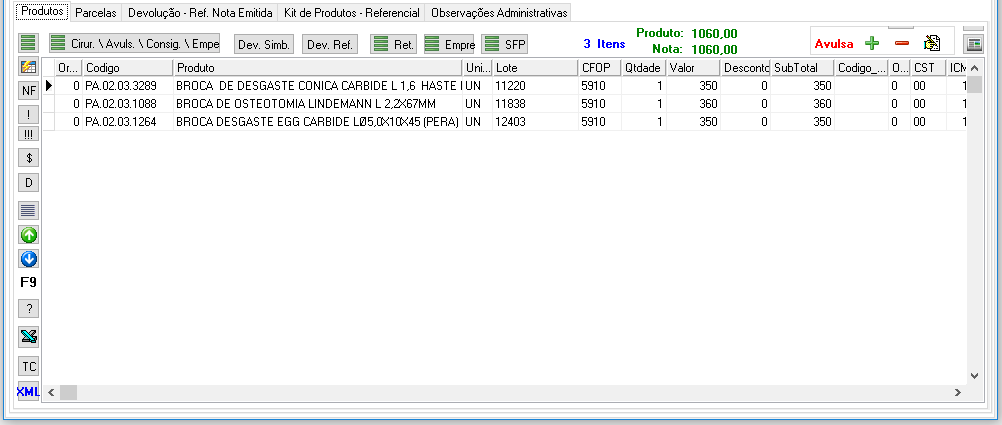 Botão "Empr.": importa os produtos recebidos por empréstimo.