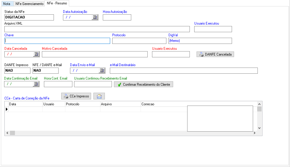 Botão "CCe Carta Correção": Efetuar a Carta de Correção.