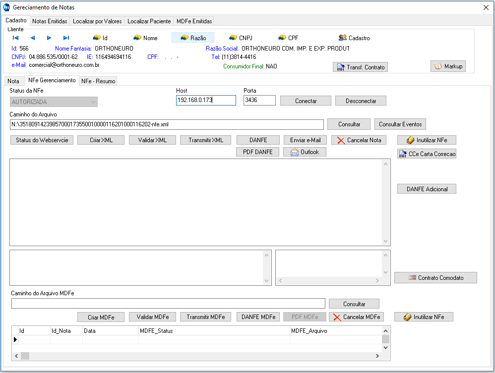 Botão "Contrato Comodato": NFe - Resumo