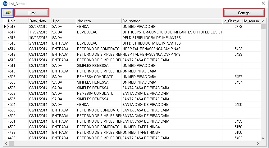 Para abrir todas as notas fiscais armazenadas no sistema, selecione o botão