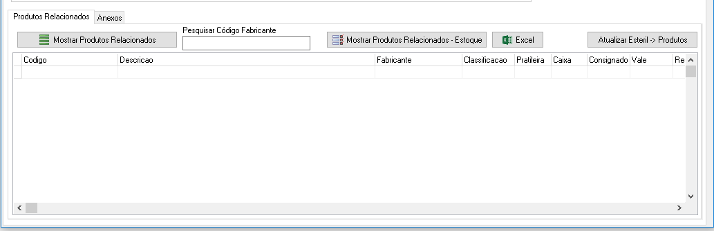 Essa guia mostra produtos que estão relacionados com registro ANVISA selecionado. Lembrando esse vínculo é criado no cadastro de Produtos.