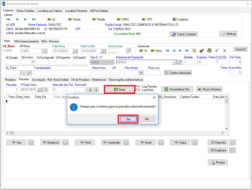 para que o sistema faça a geração das parcelas.